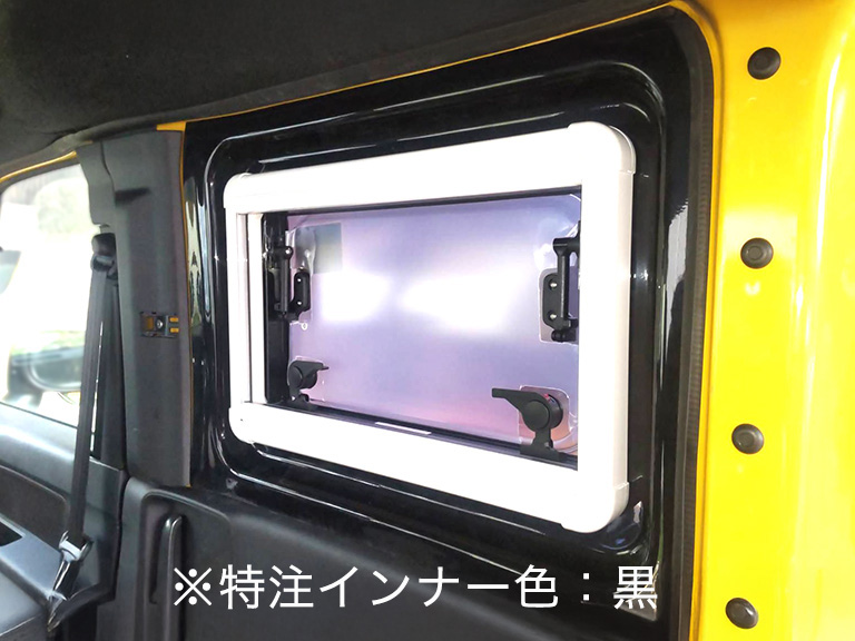 右スライドドアのウィンドを外しFRPエクステンション窓付きを取り付けることで、車内換気ができるようになります。