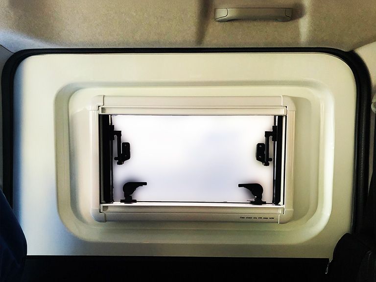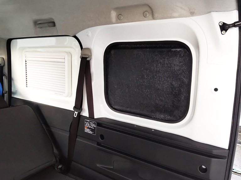 右スライドドアのウィンドを外しFRPエクステンション窓付きを取り付けることで、車内換気ができるようになります。