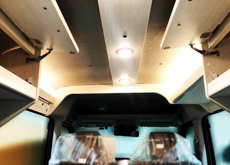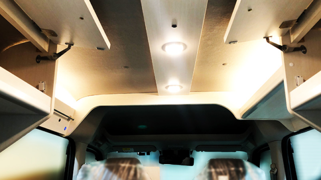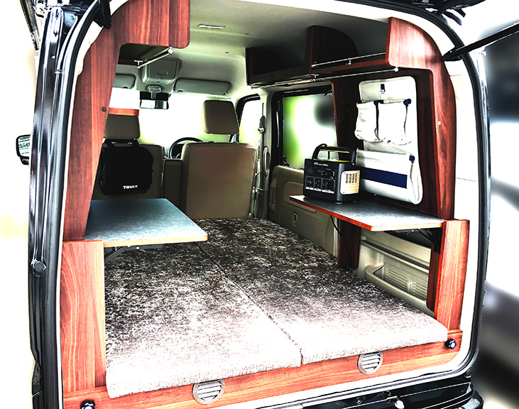 キャンピングカー「軽キャンパー」製作 2025.09.03CATEGPRIES01 完成まではもちろん、部分的な加工、作図などニーズに合わせた施工を行っていております。限られた空間をより快適にするため、各所に細かなアイデアが集結しています。 軽キャンパー①